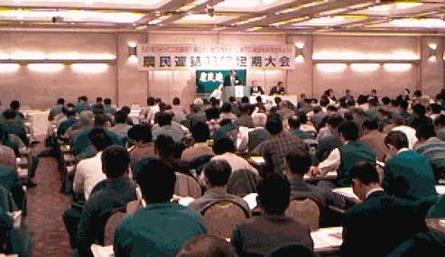新年おめでとうございます。 昨年秋から年末にかけて、なにかと皆さまには おさわがせをいたしましたが、ようやくみそ加工 場が完成し、この17日には皆さまとともに完成 を祝う事が出来ました。 また、12日からの全国連の大会にも県央センター から2名の代表を送り出したりと、今年も出だしから大車輪です。 雪のほうも今のところ落ち着いているようですが、 今の時期は農民にとって、春にむけての力を蓄える時。 それにつけても、米の、いや農業の行く末おおかたの心ある農家は 案じいているのではないでしょうか。 国内では日本の消費まかなえない、足らなくしておいてです。 「輸入これしかたない」などといわせない、というのが農民連の運動。 農家の思い集めて、消費者と一緒にもっと、もっと食べ物のこと、 作っていくことのあれこれを語り、農政を変えていく力にしていきたいものです。 農業を大事しないことは亡国につながると言われます。 99年は20世紀最後の年、緑豊かな地球を 未来に継ぐのは「農」があってこそ。恵まれ た日本の大地から豊かな実りをつくりだすた めに今年も皆さんと頑張りたいと思います。 今年もよろしくお願いいたします。 全国大会の模様(1/12第一日目) 1/12夜のレセプション…これがすごい!新潟のコーナー のっぺで地酒を…会長はご機嫌