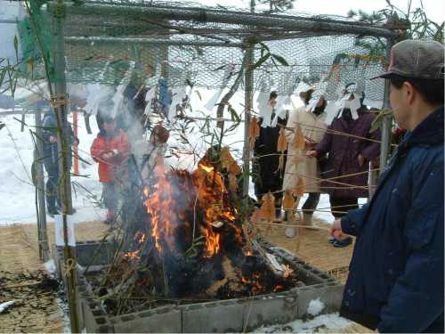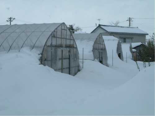 やっぱり食べたい日本のおコメ・安全で安定した食料は日本の大地から ────────────────────────────────── 大地のめぐみ 2006年1月11日 130号 農民連にいがた県央センタ− 事務局長 鶴巻純一 ────────────────────────────────── ○新年あけましておめでとうございます。今年もよろしくお願いします。 先月上旬に降った雪が根雪になり、新年1日は穏やかな一日でしたが、 3日以降は大雪になってしまいました。最低気温が0℃以下の日も何日か 出ています。当地では積雪の深さは50p位で、3m以上も積もっている 豪雪地から比べれば大したことはないのですが、それでもいまからこの 低温や積雪量ではこの先どうなるのだろうかと心配です。 ○ビニールハウスも雪に呑まれるくらいです。この時期にこの量の雪が降る のは当地では珍しく、大雪です。農家の育苗用のビニールハウスは多くが ビニールをはずしてありますが、かけたままのハウスでは雪が上の方まで 届きそうになっているところもあります。テレビでは連日豪雪被害の ニュースがでていますが、ビニールハウスの中の野菜も生育が遅れたり、 停滞したりで低温の影響が大です。○どんど焼きの行事が行われました。大雪で大変な時期ですが、三条市 三柳集落では子供会で続けられている小正月のどんど焼きの行事が行わ れました。神社の境内にやぐらを組んで、火を燃やす台をしつらえ、 神棚に供えていたお札やしめ飾りなど正月の縁起物を持ち寄って、 やぐらの中に入れて火をつけて燃やします。その火でするめをあぶって いて、食べると風邪など病気にならないというおまじないでしょう。 そばで役員の人が大鍋におでんを煮ていて、子供たちや集まった人に 振る舞うという楽しい行事です。たぶん、だいぶ昔にはおこなわれです。 子供も含めて50人ほどの地域の人たちが集まって、楽しくおこなわれ ていました。
