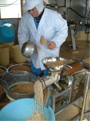 やっぱり食べたい日本のおコメ・安全で安定した食料は日本の大地から ────────────────────────────────── 大地のめぐみ 2006年3月8日 132号 農民連にいがた県央センタ− 事務局長 鶴巻純一 ────────────────────────────────── ○厚く積もっていた雪が消えて、茶色の地面が現れました。だいぶ積もって いた雪も消え、先月末には田んぼや畑が現れました。まだまだ寒い日が続い ていますが、12月に雪が早く積もった割には今年の雪消えは早いと感じてい ます。桜の開花も昨年よりだいぶ早くなりそうという報道ですので、春は平 年より暖かくなってくるのかな〜、などと思っています。一昨日の6日は啓 蟄でした。冬のあいだ土の中に巣ごもりしていた虫たちが目ざめ活動を始め る頃だそうで、徐々にそういう時期になるのでしょう。○天然熟成味噌の仕込みをやりました。先月下旬から今月初めにかけて、 ふじの木農場では仕込み味噌の製造をおこないました。今年は雪きえが早い ような暖かさのせいか、味噌造りには欠かせない麹の製造がわりと楽にでき たようです。会員が収穫した米を麹に使い、同じく収穫したエンレイ大豆と 合わせて仕込み味噌を製造します。8ヶ月間熟成しますが、夏を経過して11 月頃にはおいしい天然熟成味噌になりますので、ぜひご利用ください。また この時期には、製造した麹を利用して甘酒や麹漬けのもと(塩こうじ)もつく ります。 昔は多くの農家で自家製味噌を造っていましたが、今ではそういう農家は ほとんどなくなって、スーパーなどから買うようになっています。味噌や甘 酒の原材料は農家にしか作れないのに残念ですね。 ○総会を開きました。先日の5日、農民連にいがた県央センターは栄リージ ョンセンターで第12回総会を開きました。総会では消費者でもある新婦人 三条支部の中野さんからご挨拶をいただきました。会議の中では、農業を続 けていくには厳しい情勢だけれども、それに負けずにいろんな取り組みをや りながら、消費者の方々とのつながりを強めて、野菜の産直である野菜ボッ クスやお米の産直を大きくしていこうと話し合いました。農家にも呼びかけ て会員も増やしていこうと話し合いました。![]()