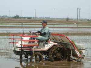 ○産直米の田植えが始まりました。多くの農家では連休中に田植えがおこな われましたが、皆さんにお届けする産直米の田植えはこれからはじまります。 稲の種まきを少し遅らせていることと、今年は育苗期間中の気温が寒かった ことから例年より少し遅れた田植えになります。代掻きや田植えの終わった 田んぼでは、アメンボが群れになって泳いでいたり、夜にはカエルの合唱が 聞こえてきます。今年の産直米もできるだけ農薬、化学肥料を使わずに栽培し、 おいしいお米を収穫しようと話し合っています。