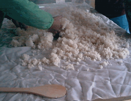 豆まきには、お正月の黒豆と 同じように「まめに暮らすように」と の願いが込められています。 もともと節分とは季節の分かれ目の こと。この時期は体の調子を崩しやすく、さらに農 作業で忙しくなる春も迫ってきます。そこで、元気 にがんばるためにも、体にいい物、固い物を食べて 歯ぐきを鍛えておこうと、固い炒りダイズをまいて 、年の数だけ拾ってしっかりかみながら食べたので す。豆まきはダイズで行うことに意味があるという ものです。 365日の歳時記より 大豆(ダイズ)といえば、みそ です。 みそ造り・始動 1/28〜 真新しい作業場、設備・機械は当然ですが、ざるや ひしゃくはかりも大と小を量るもの、事務室にはスト ーブも必要など細かな備品や消耗品を揃えないと、な どあたふた準備をしながらようやく本格的に開始しま した。 大きな圧力鍋(写真)で大豆を煮ます。すごい圧力 がかかっています。スイッチが切れても蒸気が激しく 穴から吹き出してまるで蒸気機関車のようです。 短時間で蒸すので旨みがながれださず柔らかく蒸し上 がり、そのまま食べても大変美味しい煮豆が出来上が りました。 麹室では2.3日前から作り始めておいた米こうじが 出来ていました。こめ粒全体に白い花が咲き、からみ あって一枚となり、甘い香りがしています。 塩と豆、こうじを混ぜて、ねかせておくのですが、 この段階では仕込みみそ。食べられるようになるには 一定期間が必要です。 このサイクルで2月一杯かけてみそを仕込んでいく 計画です。![]()
