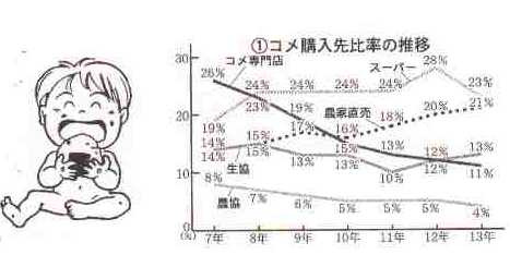 生産者直売が堅調に伸びていることがわかりました。下のグラフは平成7年