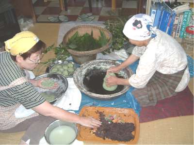 鶴巻さんの家ではおばあさんが笹団子作りをします。先日、センター事務局の