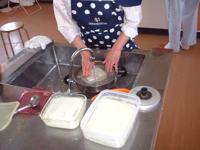 水にさらしてようやく豆腐ができました。