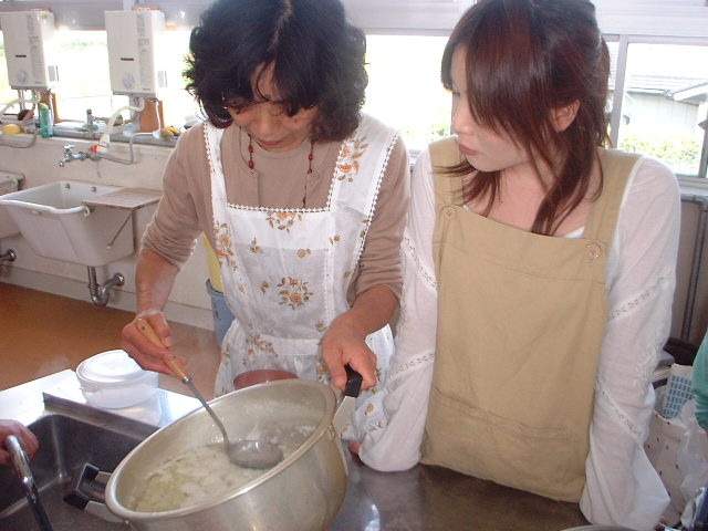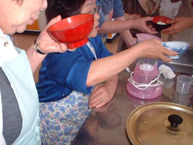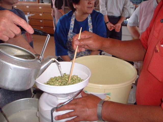 手作り班は、ミキサーで豆をつぶし絹で漉したおぼろ豆腐ができました