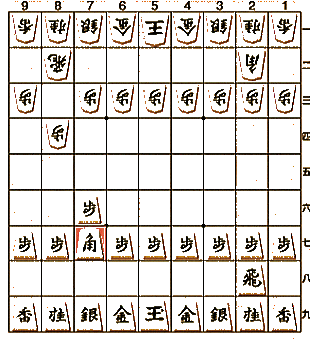 ▲7六歩 ▽8四歩 ▲7七角 (第1図)