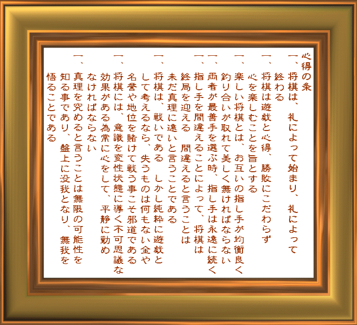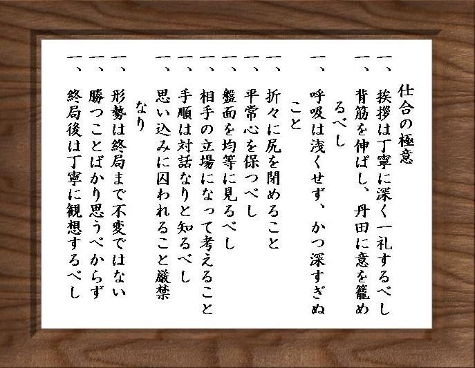 ☆道場案内 平日休日問わず、午前10時〜午後6時(年中無休) 席料 1日 500円(準会員) 会費 月 3,000円(正会員) 管理者が不在のときは、施錠して閉室しています。ほとんど 毎日師範がおりますが、時間帯によっては不在になります 電話 0256−34−2045 三条市元町9−1(東忠商店二階) BBフォン 050−1416−2714 (ソフトバンク)