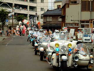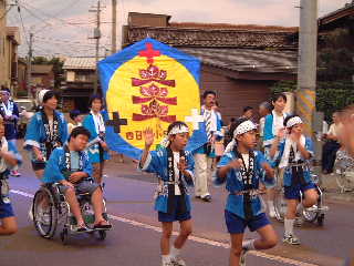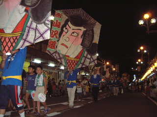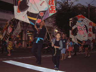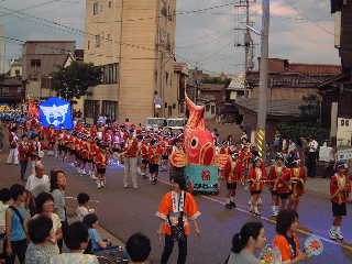 | 日が暮れて小さいストロボでは うまく撮れませんでした。 万年行列後尾の大町組です。 |